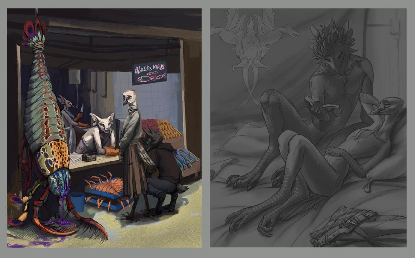 SFW/NSFW, furry/anthro/feral, dragons, dinosaurs, ponies, humans, robots, aliens, fanart.